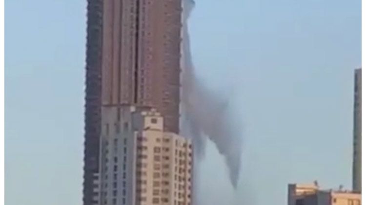 El violento balanceo habría quebrado la piscina ubicada en la cima de la torre y el agua comenzó a caer en cascada desde la parte superior. El video del episodio fue compartido por el DJ y camarógrafo londinense Majick en sus redes sociales junto con el mensaje: "El terremoto fue tan fuerte que incluso la piscina de la cubierta superior se filtró".
