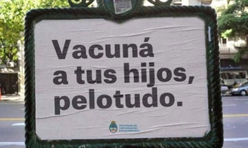 "Vacuná a tus hijos, pelotudo", así reza un letrero supuestamente colocado en las calles de Buenos Aires y compartido por miles de usuarios en la red social Twitter. El cartel, firmado por la hipotética "Secretaría de Comunicación para Pelotudos" simula una campaña oficial y trata de poner freno al movimiento antivacunas.