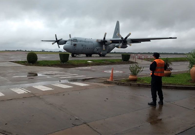 La aeronave arribó al aeropuerto local, vicecomodoro Ángel Aragonés, y cuatro móviles de la Policía de Seguridad Aeroportuaria y otros de una empresa transportadora de caudales llevaron el dinero hasta la delegación regional que el Banco Central tiene en Santiago del Estero.