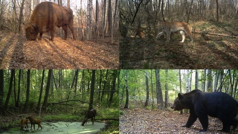 Un ejemplo claro de la diversidad de fauna en Chernóbil lo da el proyecto TREE (de las siglas inglesas Transferencia, Exposición y Efectos). Como parte de este proyecto se instalaron durante varios años cámaras de fototrampeo por toda la zona de exclusión. Las fotos revelan la presencia de fauna abundante en todos los niveles de radiación. Estas cámaras detectaron la presencia por primera vez de osos pardos y bisontes europeos en la zona ucraniana, así como la expansión de la poblaciones de lobos y caballos de Przewalski.