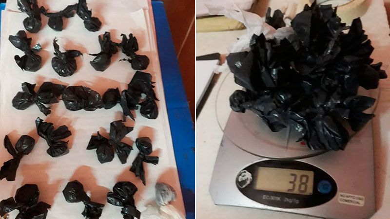 Antes las fuertes sospechas que podrían estar relacionados a un hecho delictivo, los efectivos les solicitaron que exhibieran sus pertenencias, ambos sujetos mostraron un total de 14 envoltorios de nylon, entre ellos 13 envoltorios de nylon de color verde con sustancia de color pulverulenta blanquecina y un envoltorio de nylon de color negro con sustancia vegetal deshidratada pardo verdoso, también poseían dinero en efectivo y un teléfono celular.