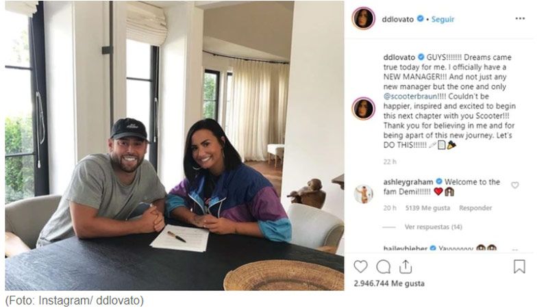 "¡Chicos! Los sueños se hicieron realidad hoy para mí. Oficialmente tengo un nuevo representante. Y no solo es un nuevo mánager, sino el único, ¡¡¡¡@scooterbraun!!!! ¡No podría estar más feliz, inspirada y emocionada de comenzar este próximo capítulo con Scooter! Gracias por creer en mí y por ser parte de este nuevo viaje. ¡Hagámoslo!", escribió la famosa.