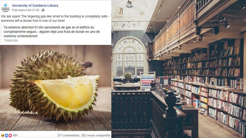 "¡Hemos abierto! El persistente olor parecido a gas en el edificio es completamente seguro: alguien dejó un durio en uno de nuestros contenedores", publicó la biblioteca en su página oficial de Facebook tras aclararse la situación.
