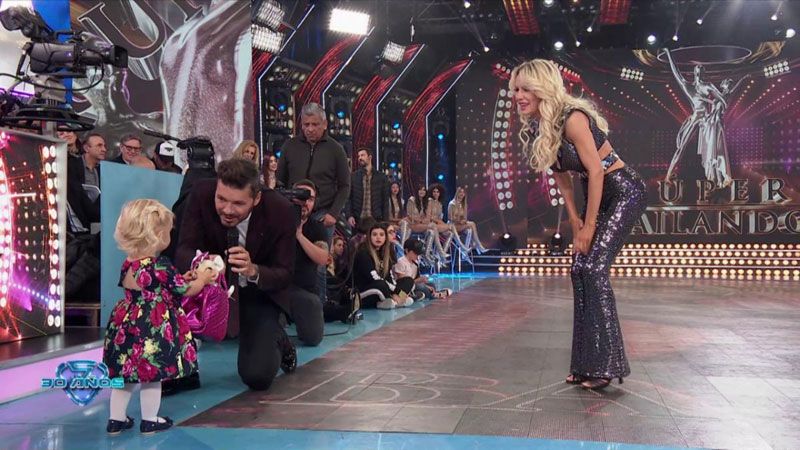 La modelo se mostró feliz al presentar a su nena en el Súper Bailando y Marcelo se divirtió con ella.