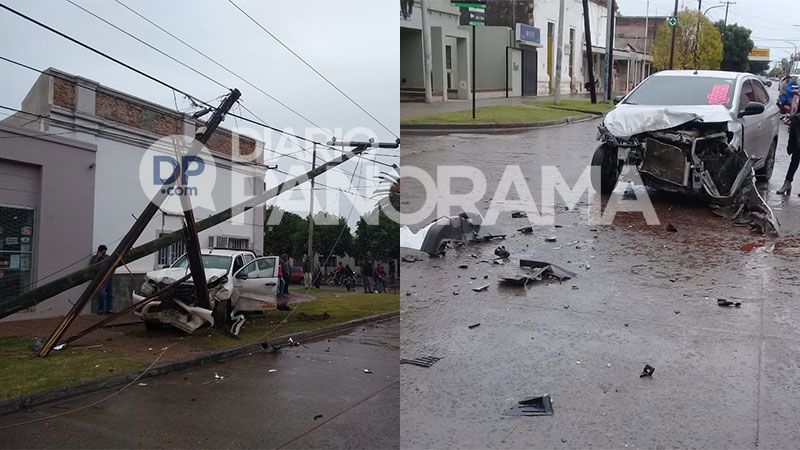 Allí, por causas que se investigan, un auto marca Chevrolet Prisma impactó con una camioneta Toyota Hilux, la cual a raíz del primer impacto, terminó chocando con dos postes de alumbrado público.