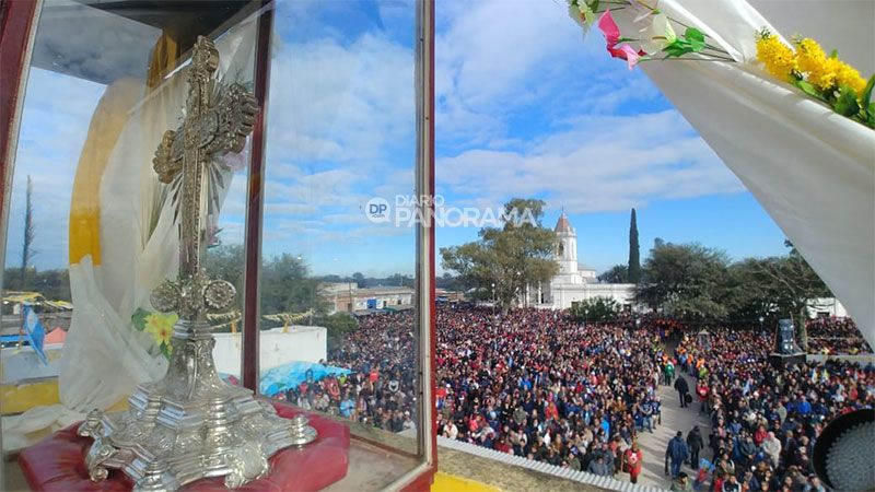 La imagen de la Virgen, que llegó a la villa el viernes, estuvo ubicada junto a la Cruz en el templete de la plaza principal del pueblo, y allí tomaron gracia los miles de fieles.