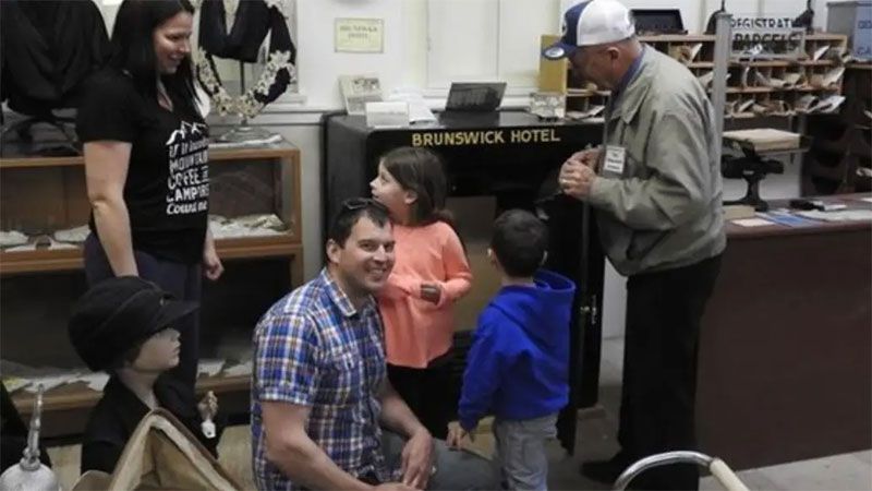 Así que la familia fue con los niños a visitar el museo con el guía voluntario Tom Kibblewhite. Uno de los objetos de la exposición era la caja fuerte que originalmente había estado en el Hotel Brunswick del pueblo, inaugurado en 1906.