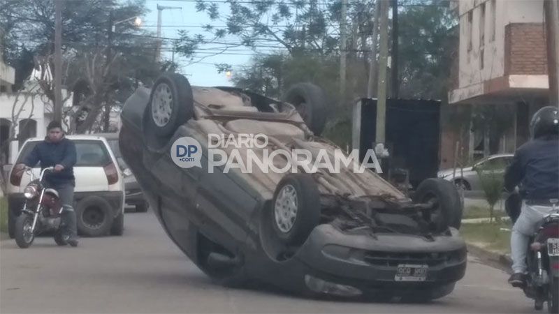 En la mañana de este sábado se registró un violento accidente de tránsito en el que un auto terminó dado vuelta sobre la cinta asfáltica.