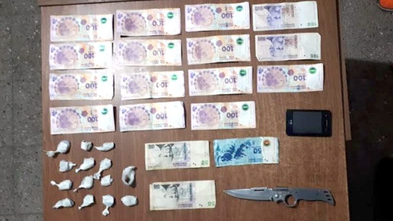 Luego fueron trasladados hacia sede policial, donde se realizó el cacheo personal, momento en que dos de ellos exhibieron ante el personal policial, 14 envoltorios de nylon que contenía una sustancia pardoverdosa, un teléfono celular y dinero en efectivo, un total de $1650. Mientras que el tercer involucrado extrajo desde sus prendas de vestir una navaja y un proyectil.