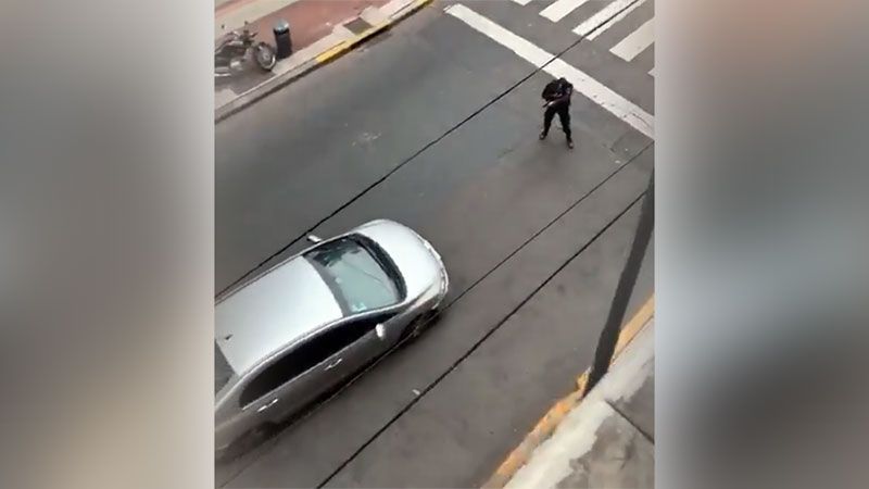 Alertado por un vecino, el efectivo de la Comisaría 1A, identificado como Juan Gauna, se paró delante del Honda Civic y apuntó al vehículo en la esquina de Talcahuano y Córdoba, mientras pedía refuerzos con su radio. El oficial mantuvo su arma en alto ante la mirada de oficinistas y automovilistas que pasaban por allí.