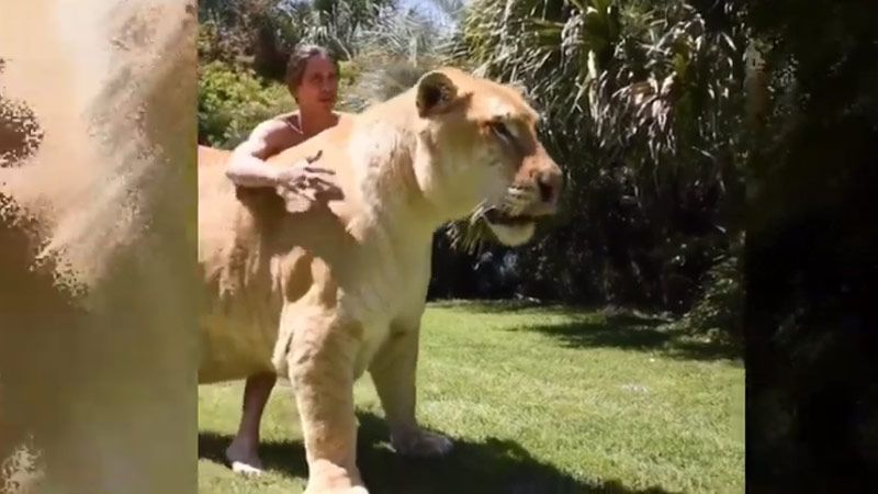 Los conservacionistas de animales Mike Holston y Kody Antle suelen publicar en las redes sociales divertidos momentos que pasan junto con el ligre, que sorprende a todos con el enorme tamaño, ya que usualmente crecen más que cualquiera de las especies parentales.