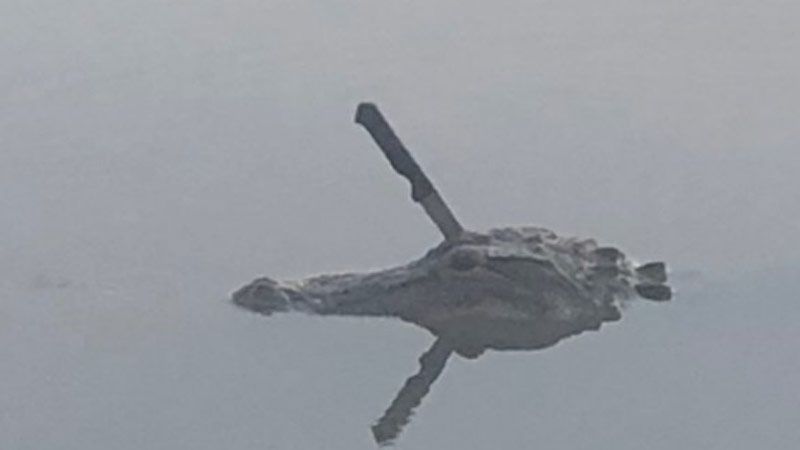 En la Red se ha vuelto viral una desconcertante imagen que muestra a un caimán con un cuchillo incrustado en la cabeza mientras atraviesa un lago del condado de Fort Bend, estado de Texas, EE.UU.
