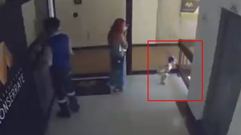 Una mujer logró de milagro salvar a su hijo de caer al vacío por el hueco de unas escaleras de un edificio en Colombia pic.twitter.com/gMNzdjElR7