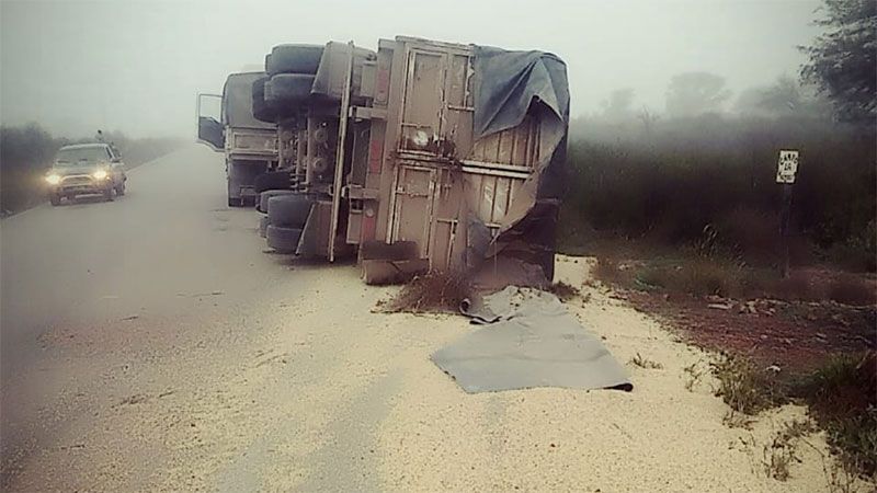 Un camión que llevaba una importante carga de soja volcó la mañana de este lunes sobre la Ruta 21, entre las ciudades de Bandera y Añatuya.