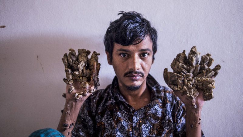 Abul Bajandar, un bangladesí de 28 años conocido como el 'hombre árbol' debido a unas extrañas verrugas de aspecto vegetal en sus extremidades, ha anunciado este lunes que quiere que le amputen las manos para aliviar un dolor insoportable.