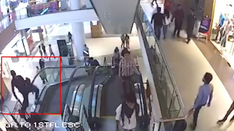 Sucedió en el centro comercial Nucleus Mall, en Ranchi, India, que grabó con sus cámaras de seguridad el accidente.