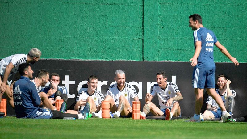 ¿Qué tiene que ver un santiagueño? La historia detrás de la foto. Un momento de rélax en la práctica de la Selección.