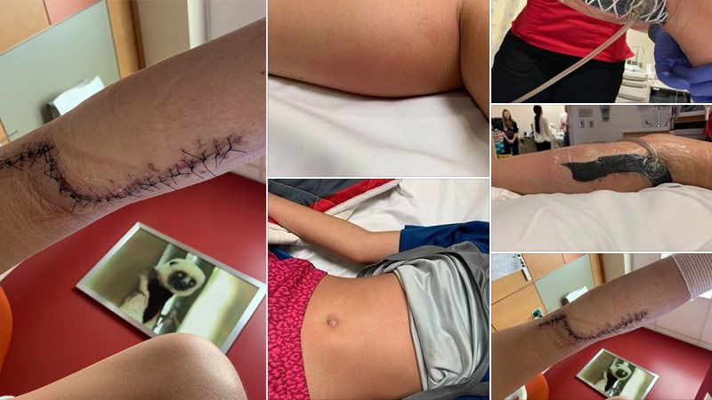 Ante los síntomas febriles de su hija, la familia acudió a un hospital. Los médicos confirmaron que la infección estaba siendo provocada por una 'fascitis necrotizante', una enfermedad bacteriana rara que se propaga por el cuerpo rápidamente y puede causar la muerte ya que se alimenta de la carne. Intervenciones quirurgícas