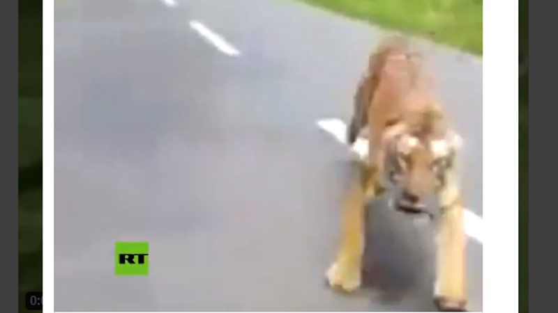 El clip muestra a un tigre, que al percatase de las dos personas en motocicleta decide de inmediato correr hacia ellos intentando atraparlos como su presa, aunque en esta ocasión el felino no tuvo éxito.