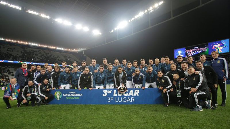Bajo un flojo desempeño del juez paraguayo Mario Díaz de Vivar, quien expulsó desmesuramente a Lionel Messi, Argentina logró los goles por intermedio de Sergio Agüero y Paulo Dybala, y terminó su participación en el torneo en el último escalón del podio.