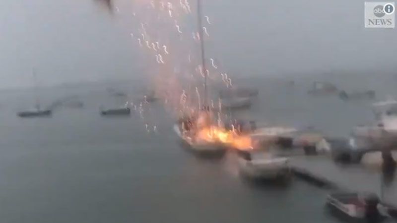 Un impactante video filmado en la bahía de Boston (Massachusetts, Estados Unidos) el pasado 6 de julio muestra cómo un relámpago impacta contra un velero amarrado.