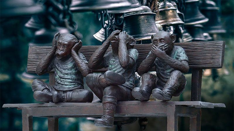¿Cuál es el verdadero significado de estos monos que bloquean sentidos? Las interpretaciones contemporáneas no son 100% erradas, aunque por lo general omiten un dato. Los monos quieren alejarse del mal. No verlo, no escucharlo, y no decirlo.