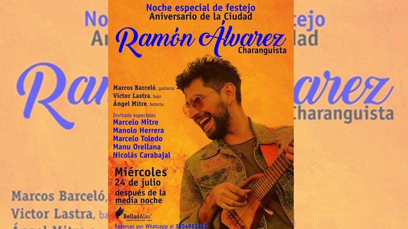 Con un mes cargado de presentaciones, el charanguista bandeño cierra julio con un gran espectáculo en homenaje al aniversario de la Madre de Ciudades. Un festejo particularmente gestionado para brindar a todos los capitalinos y visitantes que se encuentran en la provincia, de las mejores obras instrumentadas y cantadas hechas en charango.