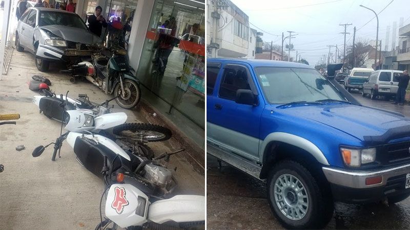Tras el impacto, el rodado menor se subió a la vereda de un local comercia y embistió a seis motocicletas estacionadas que pertenecían a los empleados de ese negocio.