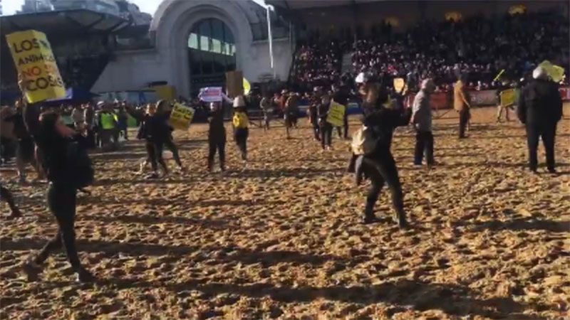 El incidente se produjo ayer por la tarde, cuando 40 defensores de los derechos de los animales irrumpieron en medio de un concurso de doma de caballos.