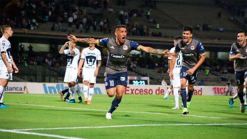 El mediocampista argentino abrió el marcador para San Luis con un cabezazo. Fue 1-1 ante Atlético San Luis.