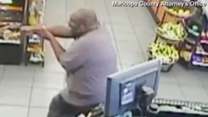 Un video de cámaras de vigilancia recientemente publicado muestra el momento en que un hombre entra a una tienda de autoservicio en la ciudad de Maricopa, en el estado de Arizona (EE.UU.), mata a un cliente y toma como rehenes a ocho personas.