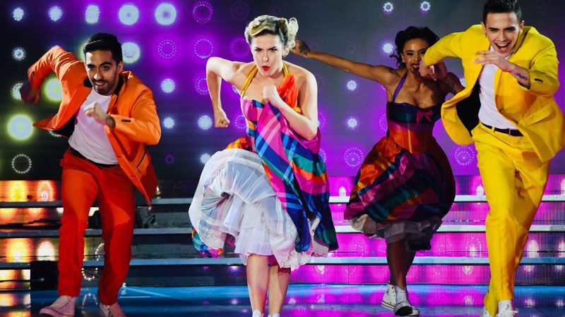Sofía Pachano apareció en la pista con su perro salchicha Apolo, que jugó con Marcelo Tinelli y corrió por todo el estudio. Después, sí, la bailarina y su partenaire, Nicolás Villalba se movieron al ritmo de "Wake me Up Before You Go-Go", en la versión de Glee. La pareja contó, como el resto de los concursantes, con la presencia de otros dos bailarines, pero también con el coach y tres cantantes que también danzaron en determinado momento de la coreografía.