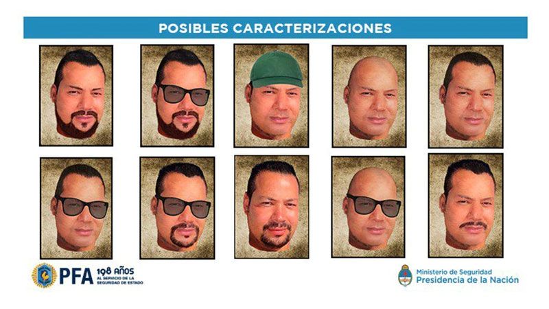 En las últimas horas, la Policía Federal volvió a publicar la búsqueda en su cuenta de Twitter e incluyó una suerte de identikit con diez "posibles caracterizaciones" o looks del prófugo: con pelo corto, calvo, con barba y lentes o gorra, entre otros.