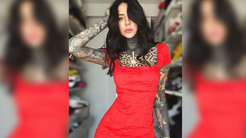 "Bienvenidx a mi caos", escribió en una selfie con un body rojo con encaje, súper sensual.
