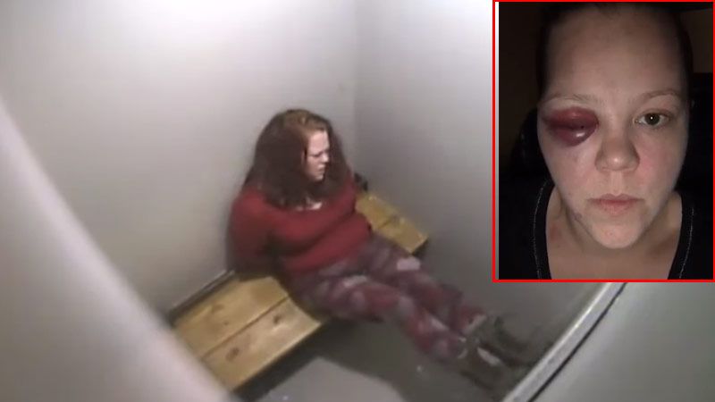 En comisaría, esa sospechosa pateo repetidas veces la puerta de su celda, incluso después de que los agentes se lo prohibieran. La cámara corporal del sargento Jason Lawton y un dispositivo de vigilancia captaron cómo ese policía intentó calmar a Conelly, quien se puso de pie e ignoró la orden de volver a sentarse.