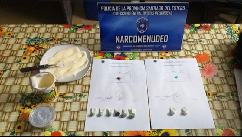Nuevamente en la sede policial, la policía vacío de su contenido en envase de yogurt y allí encontraron nueve envoltorios de marihuana y dos de cocaína. En presencia de testigos del procedimiento, los efectivos pertenecientes a la División de Drogas Peligrosas efectuaron las pruebas de campo para detectar la presencia de sustancias prohibidas.