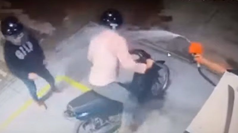 Una pareja llegó en motocicleta a una estación de servicio, el conductor se bajó y amenazó al trabajador, quien lo ahuyentó de una manera insólita.