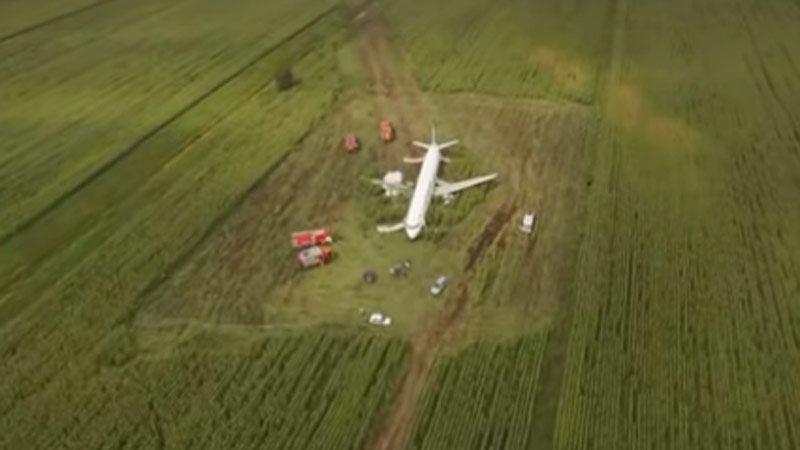 Rusia. Los pilotos lograron aterrizar la aeronave en un campo de maíz luego de que sus motores quedaran fuera de servicio.