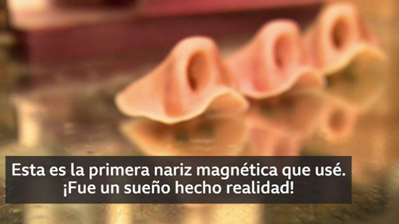 Un sistema de imanes mantiene la prótesis en su lugar. "Fue un sueño hecho realidad", dice Jayne.
