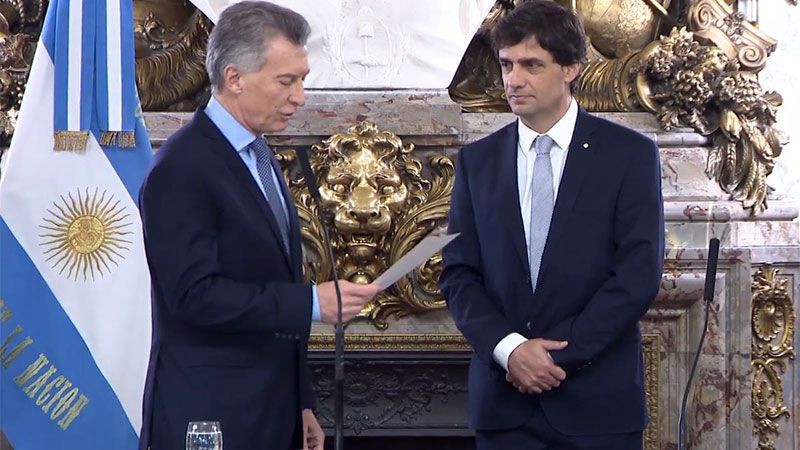 Hernán Lacunza se convirtió formalmente en el nuevo ministro de Hacienda luego de jurar ante el presidente Mauricio Macri este martes en el Salón Blanco de Casa Rosada. Tras el acto formal, el Jefe de Estado le solicitó al nuevo funcionario que con sus decisiones "cuide a los argentinos" y abra "canales de diálogo" para reducir la incertidumbre.