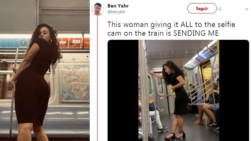 "Esta mujer dándole TODO a la cámara de selfie en el tren", escribió el usuario, Ben Yahr, junto con la grabación, que no tardó en hacerse viral en las redes sociales. La publicación acumuló más de ocho millones de vistas y 227.000 'me gusta' en Twitter. Muchos internautas la elogian por la confianza que muestra en sí misma y por no preocuparse por la opinión de otras personas que van en el tren.
