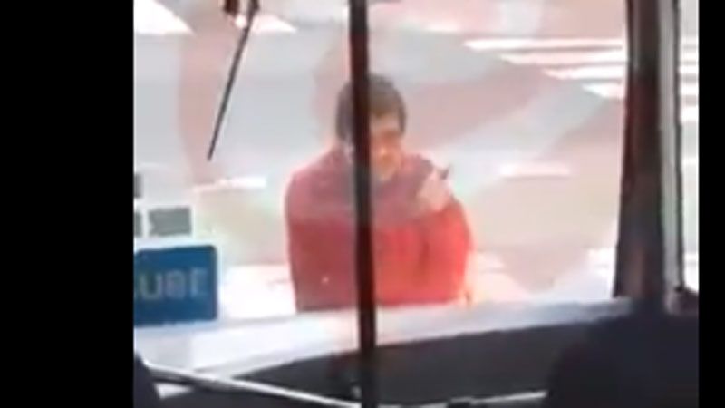 En la imagen se observa cuando manipula un cuchillo frente a un colectivo y otros vehículos. Tras ello fue denunciado.