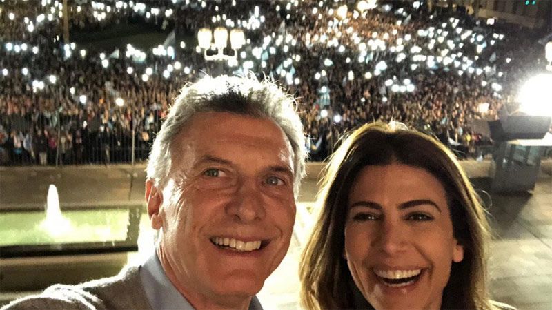 El Presidente utilizó sus redes sociales para publicar una imagen junto a la primera dama Juliana Awada desde el balcón de Casa Rosada, con la masiva marcha en su apoyo de fondo.