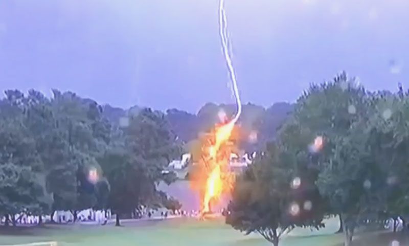 En un principio, la tercera vuelta del certamen había suspendida durante aproximadamente 30 minutos debido a las tormentas en el área, y se les recomendó a los espectadores que buscaran refugio. En ese momento, el rayo golpeó la parte superior del árbol y rompió la corteza hasta el fondo. "Hubo una gran explosión y luego una réplica tan fuerte que se podía sentir el viento", contó a AP Brad Uhl, uno de los testigos. "Fue solo un destello. Estaba lloviendo y todos estaban acurrucados cerca del árbol".