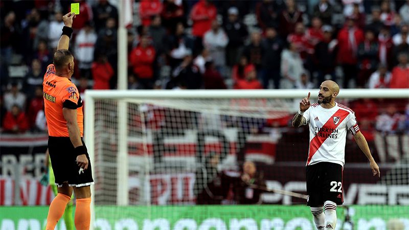 El defensor de River había sido amonestado en el primer tiempo y, tras protestar ante el árbitro Néstor Pitana, vio su segunda tarjeta amarilla.