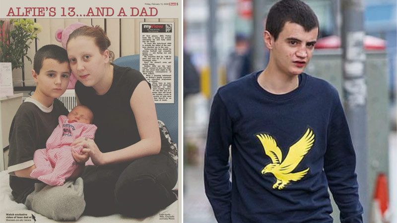 Alfie Patten, ahora de 23 años, acaparó las portadas de todos los diarios británicos en febrero de 2009, cuando tenía 12 años y afirmó que había embarazado a su novia Chantelle Steadman, que entonces tenía 15.