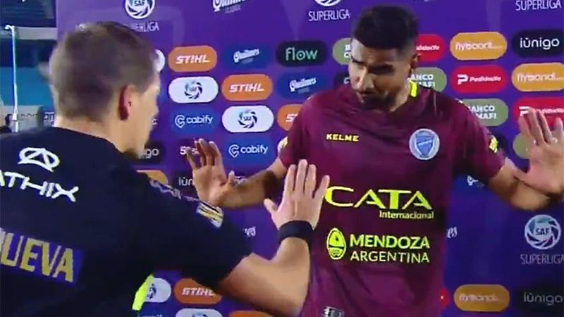 En un momento, un incómodo Varela le preguntó a Delfino "¿me estás amenazando?", hasta que auxiliares decidieron intervenir y llevarse al árbitro rumbo al túnel. Increíble.