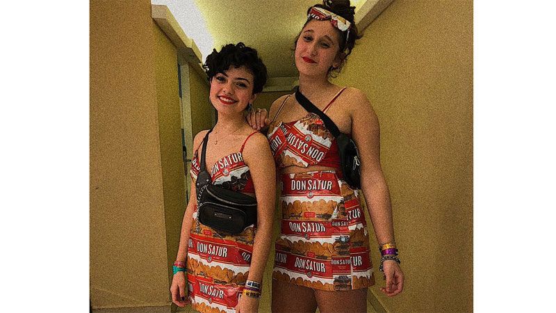 Dos amigas quisieron ser originales en una fiesta bizarra de su viaje de egresados y para ello se vistieron de Don Satur, o mejor dicho, con paquetes de bizcochos de esa conocida marca.