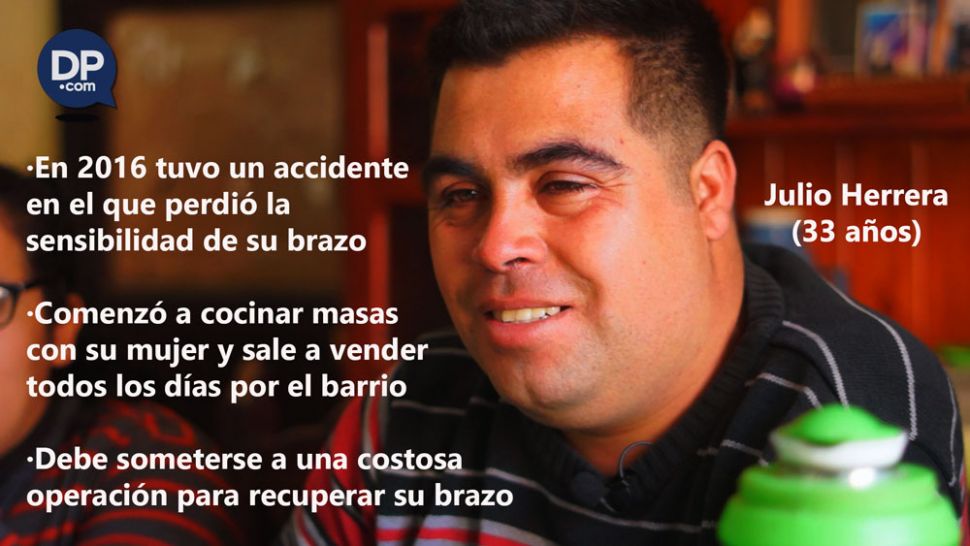 Julio sufrió un accidente que le cambió su vida para siempre. Sin embargo encontró la manera de sacar adelante a su familia, cocinando masas con su mujer y vendiendo casa por casa en barrios de La Banda. Conocé su historia.