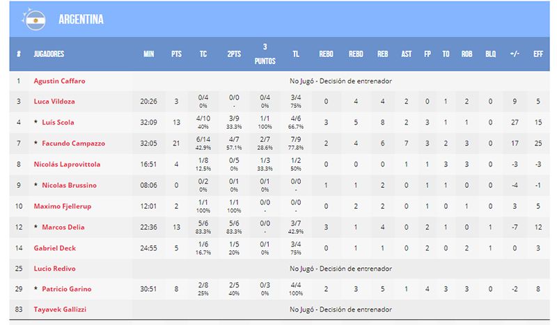 Con el partido en favor de la Argentina 63-61, y 37 segundos para el final, el base cordobés convirtió 4 puntos, y logró un robo y una asistencia, que terminaron por sellar el 69-61.